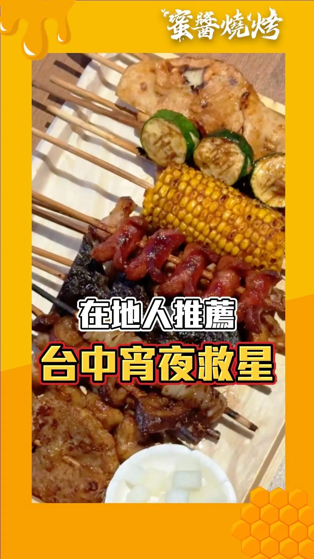 晚上想吃點鹹香又療癒的? 蜜醬燒烤就是台中宵夜救星🔥 我們的每一串,從食材選料、醬汁調製、到火候控制, 都經過無數次測試,只為呈現完美的一口。