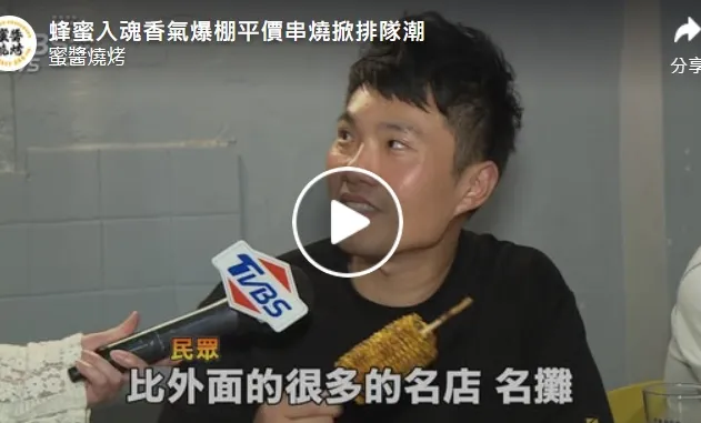 感謝TVBS新聞網報導,揭露我們蜜醬燒烤的「純蜂蜜入醬+獨家燒烤技法」如何掀起台中串燒排隊熱潮! 從蜂蜜、鳳梨、蘋果熬製醬汁,到每串現烤、現刷醬,再搭配冰涼啤酒,這份「甜而不膩・蜜香層次